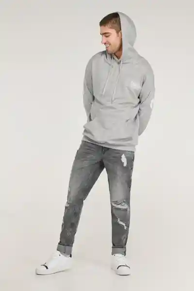 Buzo Para Hombre; en Tela de Cuerpo Unicolor; Con Estampado Frontal y Posterior en Tono Contraste y Bolsillo Canguro.