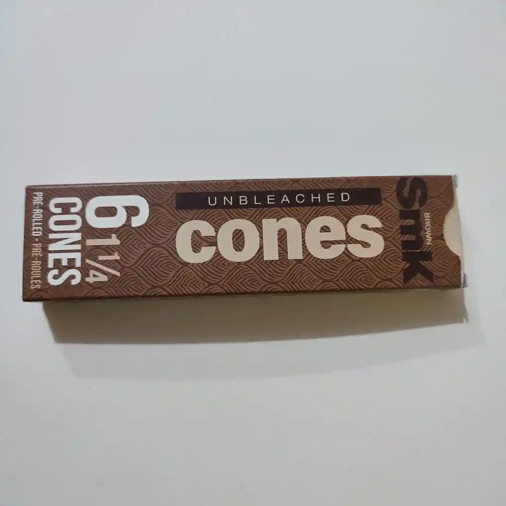 Los SMK Cones están hechos de papel sin blanquear, completamente natural y ultradelgado,. Estos conos pre-enrollados están listos para ser llenados, lo que facilita el proceso de armado y asegura una combustión lenta y uniforme. Estos conos están fabricados con fibras de alta calidad y goma arábiga natural.