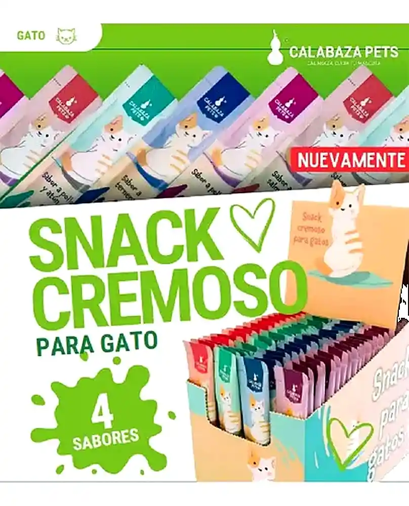 Snack Cremoso Gato Calabaza Pets es una deliciosa golosina diseñada especialmente para satisfacer el paladar de tu felino. Este snack cremoso es la elección perfecta para mimar a tu gato con una textura suave y un sabor irresistible que hará que se relama después de cada bocado. Con sabores como Pollo Bacalao, Pollo y Salmón, y Ternera y Pollo, cada porción es una nueva experiencia de sabor. Los gatos disfrutarán de una combinación única que no solo es sabrosa, sino también nutritiva, garantizando que tu compañero peludo esté satisfecho y feliz en cada momento. Los snacks cremosos Calabaza Pets son ideales para momentos de juego, entrenamiento o simplemente para mostrarle a tu gato cuánto lo quieres. Cada envase está pensado para ser una forma fácil y divertida de premiar a tu mascota, asegurando que cada día sea especial. Incorpora estos deliciosos snacks en la dieta de tu gato y observa cómo se transforma su rutina de alimentación en un momento de pura felicidad. Con Snack Cremoso Gato Calabaza Pets, cada bocado es un abrazo de sabor que tu gato no podrá resistir.