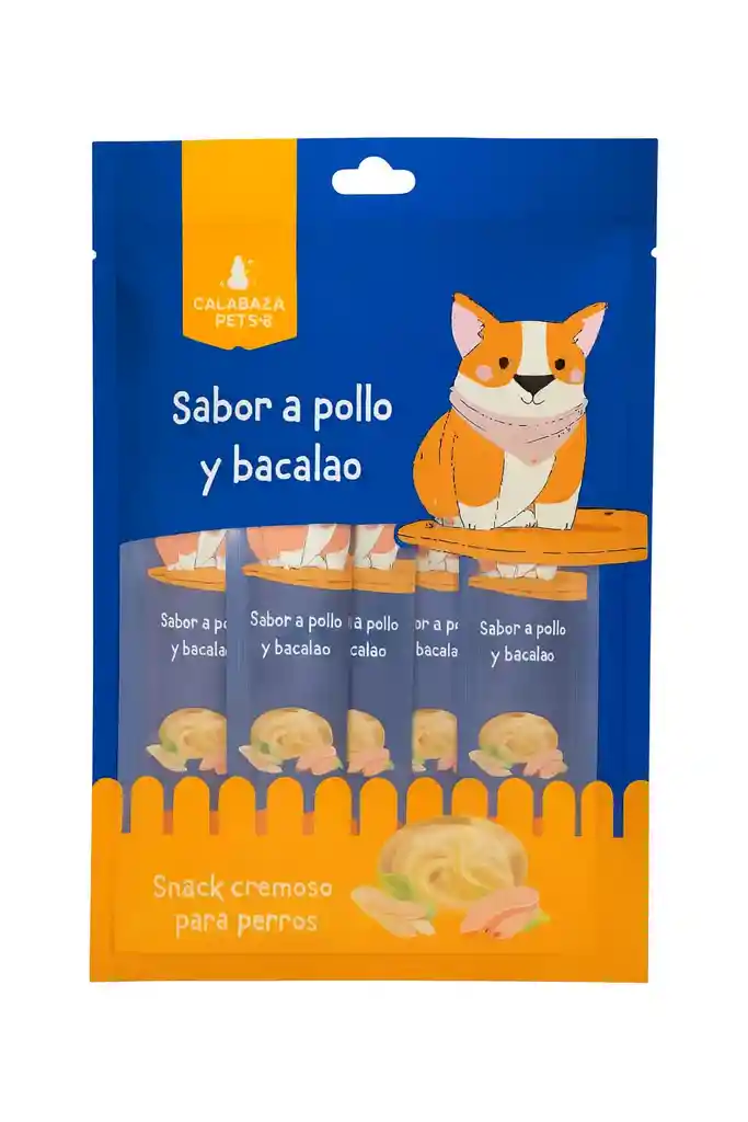 Delicioso snack cremoso hecho con pollo y bacalao. Ayuda a la hidratación, aporta proteínas de alta calidad y nutrientes esenciales, y es perfecto como premio apetitoso para complementar su dieta.