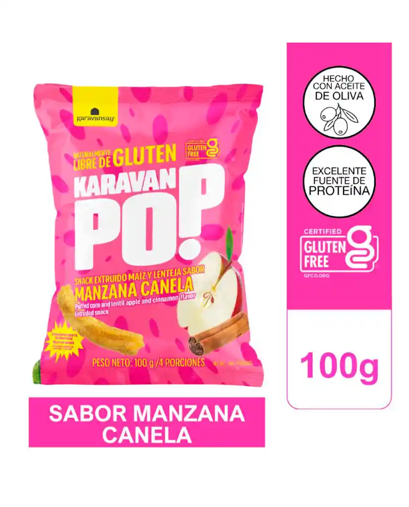 Snack de maíz sabor manzana y canela Karavansay 100 g. Una combinación equilibrada entre lo dulce y lo crujiente, perfecta para disfrutar en cualquier momento. NSA-0019181-2024