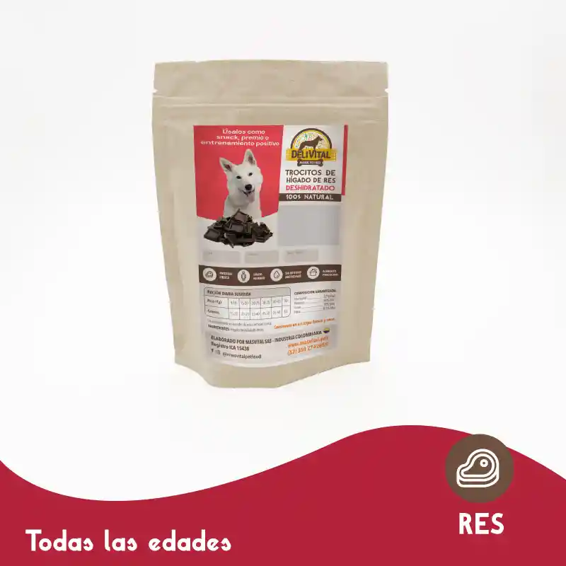 Trocitos de hígado deshidratado para perros de todas las razas a partir de los 3 meses de edad.
