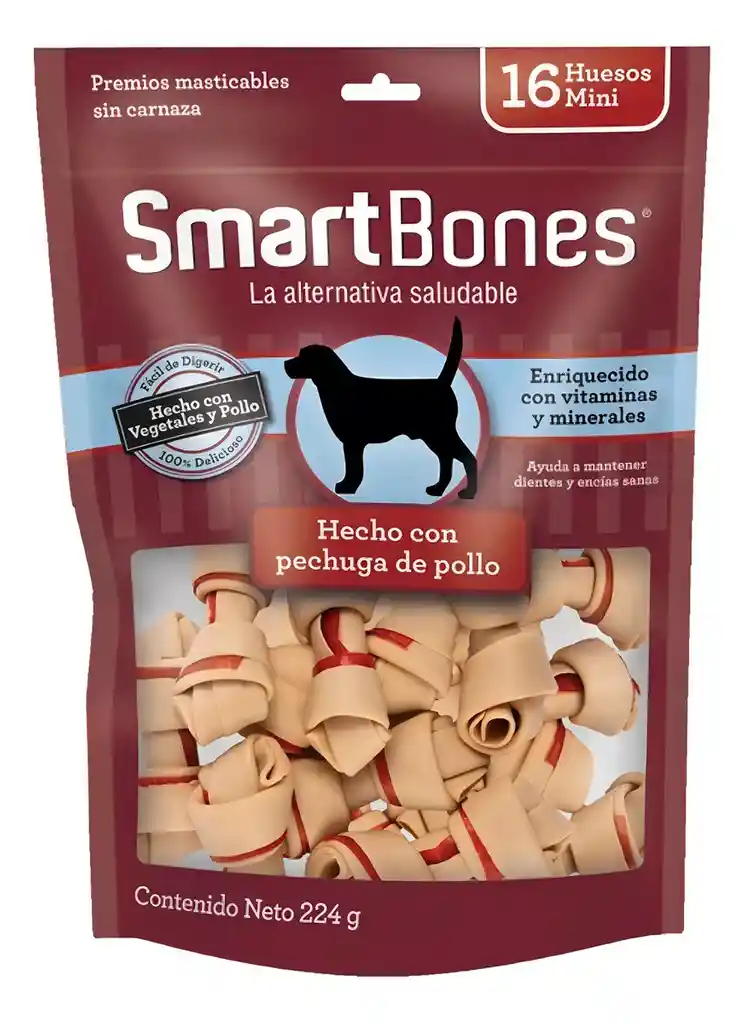 Los Smartbones Premios Perro Huesitos Pollo Veg Sin Carnaza son la opción ideal para consentir a tu mascota. Con un peso neto de 224 g y un total de 16 unidades por envase, estos snacks están diseñados para ofrecer un sabor irresistible a pollo que encantará a tu perro. Su textura seca y crujiente no solo es deliciosa, sino que también contribuye a la salud dental de tu mascota, ayudando a mantener dientes y encías sanas. Estos huesos mini son perfectos para perros de todos los tamaños y edades, brindando un momento de diversión y satisfacción en cada bocado. Además, al ser veganos y sin carnaza, son una alternativa más saludable que otros snacks convencionales. Sorprende a tu compañero peludo con un premio que no solo le encantará, sino que también cuidará de su bienestar. Incorpora los Smartbones en la rutina de tu perro y observa cómo disfruta de cada momento de juego y recompensa. Con su delicioso sabor a pollo y sus beneficios para la salud dental, estos snacks son una elección inteligente para los dueños que buscan lo mejor para sus mascotas. Dale a tu perro el regalo de un snack que combina sabor y salud en cada bocado. Garantía del vendedor: 30 días