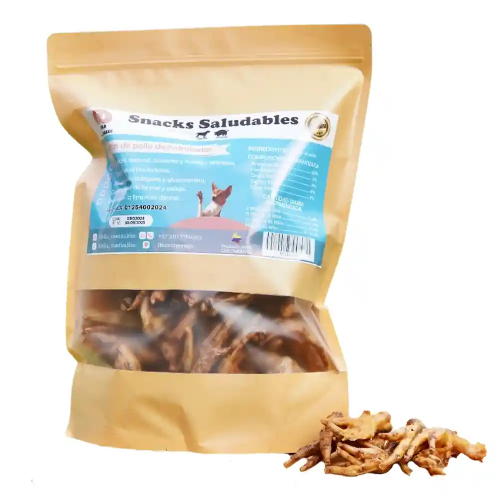 Snack 100% natural, crocante y sus huesitos son arenosos. Su único ingrediente son las patas de pollo lo que hace que sea un snack saludable y seguro para tu animal de compañía, su olor las hace irresistibles. Apto para perros de todas las razas y minipigs.
