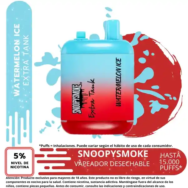 Snoopy Smoke Extra Tank 2 15000 Desechable Características: – Capacidad precargada: 18mL x 2 – Capacidad de la batería: 650mAh – Max Puffs: 15000 – Potencia de nicotina: 5% (50mg) – Funcionamiento: Activado por tiro – Elemento calefactor: Bobina de malla – Carga: Puerto Tipo-C