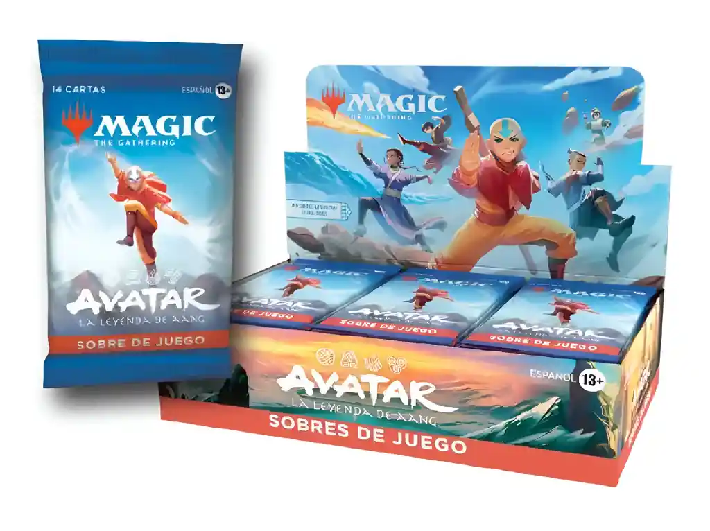 Sobre Magic Avatar La Leyenda Dee Aang TCG ¡Producto Original! Recuerda, estás comprando un sobre sellado con 14 cartas. Idioma: Español Juego de Cartas Coleccionable. Te garantiza que puedes participar en torneos. Los cuatro elementos se unen al universo de Magic en una colección épica. Cada sobre te sumerge en el mundo de Avatar, con personajes icónicos, habilidades elementales y estrategias inspiradas en la legendaria serie. • Cartas temáticas y poderosas • Aang, Zuko, Katara, Toph y más • Jugabilidad intensa con sabor a Avatar Abre un sobre, domina un elemento y lucha por mantener el equilibrio en cada partida, cada sobre de juego reúne lo mejor de los sobres de draft y de los sobres de set. CONTENIDO DEL SOBRE En este sobre te pueden salir las siguientes cartas: • De 6 a 9 comunes. • De 3 a 5 poco comunes. • De 1 a 4 raras o raras míticas. • 1 carta foil tradicional de cualquier rareza. • 1 carta de arte o ficha no foil Recuerda, somos TIENDA MOVITEC
