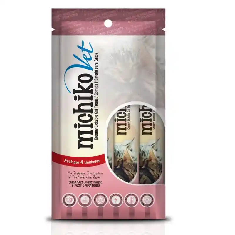 Suplemento nutricional para gato Michiko vet embarazo, post parto y post operatorio brinda apoyo nutricional en etapas de alta demanda. Aporta vitaminas y minerales que ayudan a mantener la condición corporal, fortalecer defensas y favorecer la recuperación tras cirugía o lactancia. Su administración diaria, junto con una dieta balanceada y control veterinario, contribuye al bienestar integral de la gata.