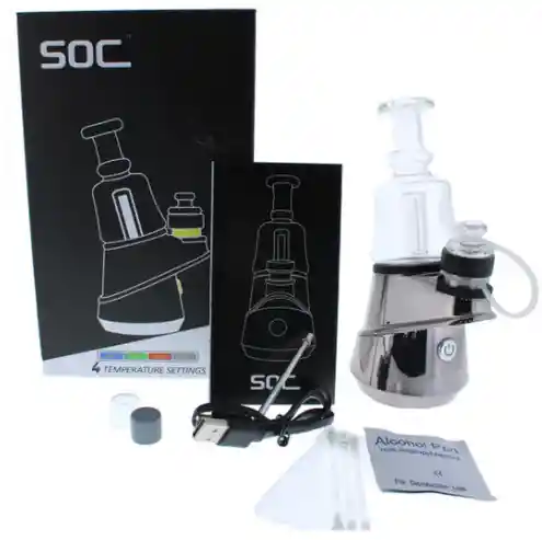 El SOC es un equipo eléctrico portátil para dab que le permite disfrutar de sus aceites esenciales y concentrados sin la molestia de tener que sacar su equipo y soplete. Simplemente presione, caliente y disfrute.