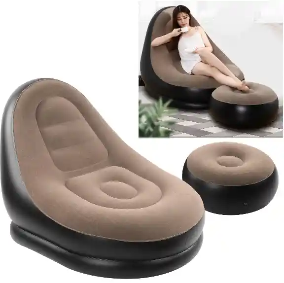 Sofá Inflable de Lujo 2 Piezas: Ideal para Espacios Dinámicos Este sofá inflable tipo sala con reposapiés redefine la comodidad moderna. Su diseño inteligente y su construcción robusta te garantizan una experiencia de descanso superior, mientras que su portabilidad te permite crear un ambiente relajante en cualquier rincón de tu hogar. Además, su estilo contemporáneo realza la estética de cualquier habitación. Detalles técnicos: Material de fabricación: PVC ecológico y acabado tipo gamuza para máxima suavidad y confort. Dimensiones del sofá: Amplio espacio para sentarse o recostarse cómodamente. Diseño dos piezas: Reposapiés separado para adaptarse mejor a tu posición favorita. Fácil transporte: Liviano y sencillo de mover, ideal para quienes disfrutan de reorganizar su espacio. Versatilidad de uso: Apto para ver televisión, leer, jugar videojuegos o simplemente descansar. Nota: Garantía válida por 30 días ante defectos de fabricación. No se cubren daños humanos o cortes accidentales.