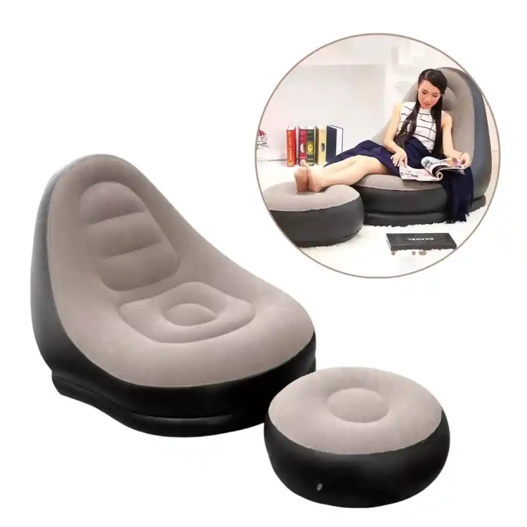 Disfruta de la comodidad donde quieras con este práctico sofá inflable con reposapiés. Su diseño ergonómico y moderno lo convierte en la opción ideal para descansar, leer, ver televisión o relajarte al aire libre. Fácil de inflar y transportar, es perfecto para espacios pequeños, habitaciones juveniles, oficinas, balcones, camping o viajes. Su superficie suave al tacto y su estructura resistente garantizan una experiencia de uso cómoda y duradera. DETALLES Material: PVC de alta calidad 100% seguro y ecológico Cómoda gracias a su diseño ergonómico Variedad de colores Peso máximo 80KL Diseño ergonómico: respaldo curvado para una postura cómoda. Incluye reposapiés: ideal para elevar las piernas y descansar mejor. Fácil de inflar y desinflar: válvula de seguridad que permite inflado rápido con bomba manual o eléctrica. Portátil y ligero: fácil de guardar y transportar. Versátil: apto para uso en interiores y exteriores. Dimensiones estimadas: sofá 116 x 98 x 83 cm, reposapiés 65 x 28 cm. *IMPORTANTE* El color del producto puede variar, según la disponibilidad en el momento* **INFORMACION IMPORTANTE **El color de la foto es referencial para que puedas ver los atributos del producto y al mismo tiempo es la opción 1 nuestra de despacho. Pero dejamos la aclaración para que lo tengas presente por si te llegara en otro color. ** NOTA : La foto de este producto ha sido ambientada, por lo cual no incluye ningún adorno, ni accesorios, ni piezas adicionales ni ningún otro elemento que lo acompañan. Observaciones De Garantía: 1 Mes **** La garantía de este producto es exclusivamente por defectos de fábrica, no por daños ocasionados por mal uso o por desconocimiento de uso del cliente. La garantía se tramitará bajo las políticas, términos y condiciones establecidos por la empresa. ****
