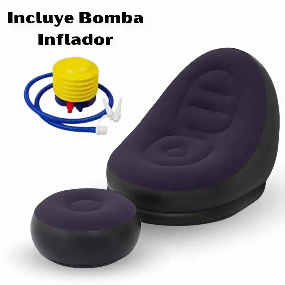Disfruta de la comodidad y versatilidad de este sillón inflable, perfecto para relajarte en cualquier lugar. La bomba de aire incluida hace que inflar el sillón sea rápido y sencillo, ideal para uso en interiores y exteriores. Este sillón se adapta fácilmente a cualquier espacio. Dimensiones: - 116 cm de largo - 98 cm de ancho - 83 cm de alto Además, incluye un posapies Dimensiones: - 62 cm x 62 cm x 31 cm El cual proporciona un soporte adicional para tus piernas, mejorando tu experiencia de descanso.