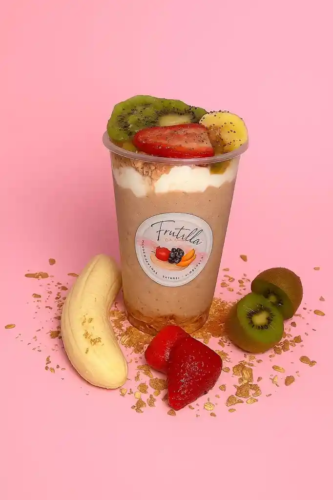 Banano, fresa y kiwi en una mezcla cremosa con granola y un toque de chía. Suave al inicio, refrescante al final. Sabor tropical que enamora
