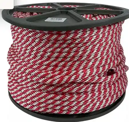 Soga Marina Blanco/rojo 12mm x metro roja con blanco triple algodon por metro , resistente para trabajos von ganado , equinos , trabajos pesados de construccion.