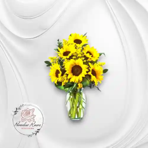 Hermoso arreglo de 8 girasoles frescos en jarrón de vidrio, Ideal para, Decoración especial, Agradecimientos, Regalos de amistad.