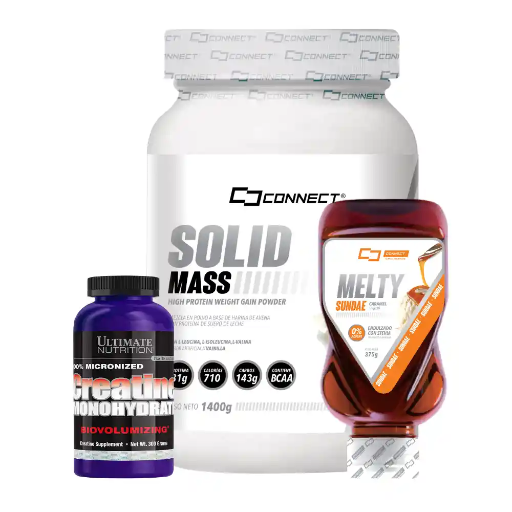 La proteína es uno de los macronutrientes fundamentales en la alimentación de todo ser humano, encargada no solo de la construcción de tejido muscular sino de la recuperación del tejido dañado, e incluso de mantener una reserva para las funciones que así puedan requerirlo. Una de las características principales que debe tener un suplemento proteico es su rápida absorción y un perfil de aminoácidos completo para poder favorecer a la formación de nuevos tejidos. Si hacemos una analogía, los aminoácidos son los bloques que conforman un muro, siendo este último la proteína. Las necesidades de proteína pueden variar de individuo a individuo, además que esta necesidad dependerá no solo del peso de este individuo sino también de su edad, de su actividad física diaria e incluso de otros factores importantes como si padece o no de alguna enfermedad en el riñón o en el hígado. Para poder cubrir las diferentes necesidades de nuestro público desarrollamos la Serie Solid, donde utilizamos una materia prima de la más alta calidad y grado farmacéutico consiguiendo un nivel de excelencia en cada uno de sus ingredientes. Con esto logramos una variedad de suplementos proteicos, cada uno con características especiales para suplir las necesidades de todo tipo de público. Nuestra proteína hipercalórica combina la proteína concentrada de suero al 80% con una fuente mixta de cereales como lo es la avena y el arroz, además de aminoácidos de cadena ramificada para optimizar el perfil de la proteína base y optimizar la activación de la síntesis de músculo. Este producto es ideal para los periodos de volumen donde la intención es de que ganes masa muscular sin preocuparse por el aumento de grasa y agua que suelen causar los azúcares simples. También tiene nuestro doble edulcorado Sucralosa y Estevia cero calorías, junto a un sabor único French Vanilla