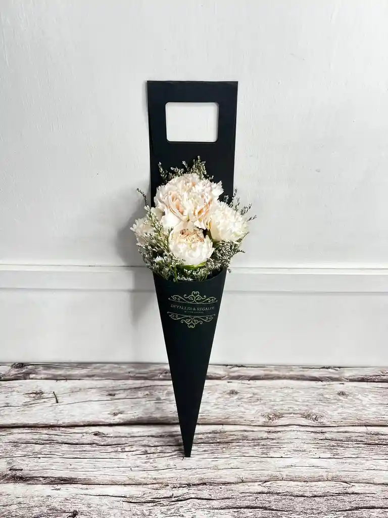 Solitario de Claveles. Color de caja y claveles de acuerdo a disponibilidad.