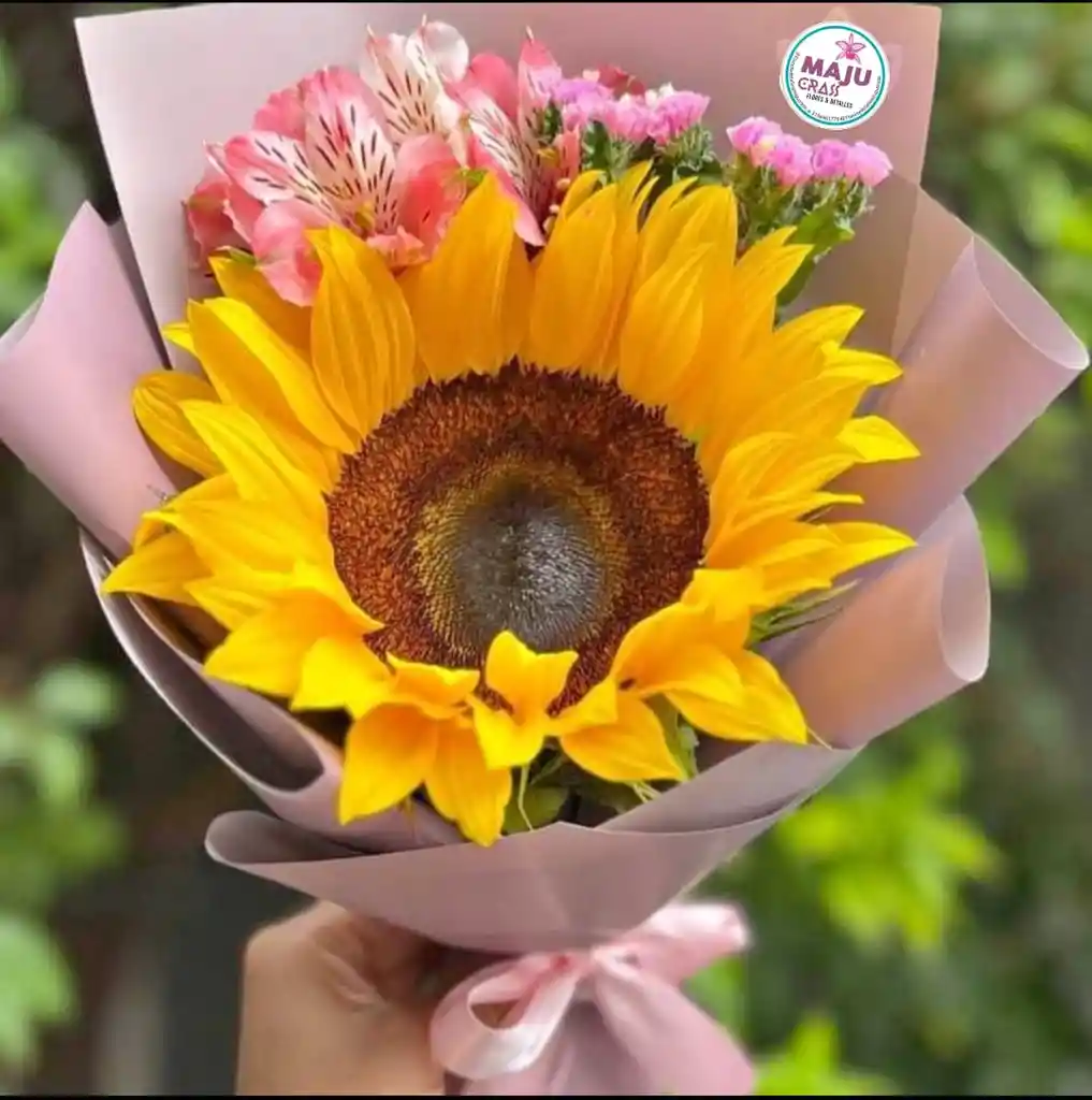 girasol natural en papel fino con follaje que varia según inventario