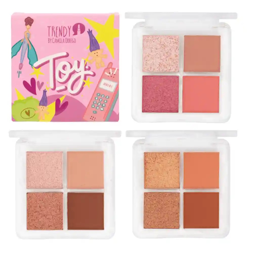 Tú y las sombras ahora serán inseparables. La paleta Toy son del tamaño justo para llevar contigo siempre. La combinación de la calidez y la elegancia la vas a lograr con estas sombras. Su pigmentación es excelente. Vienen en 3 referencias, ¡Todas son perfectas para realizar maquillajes hermosos! Cada paleta contiene 2 tonos mate y dos tonos satinados que vienen en colores tierra y rosa. Se envían surtidas, ¡Te llegará la perfecta para ti!