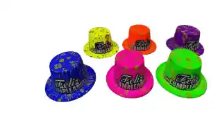 SOMBRERO COPA ALTA NEON FELIZ CUMPLEAÑOS X12