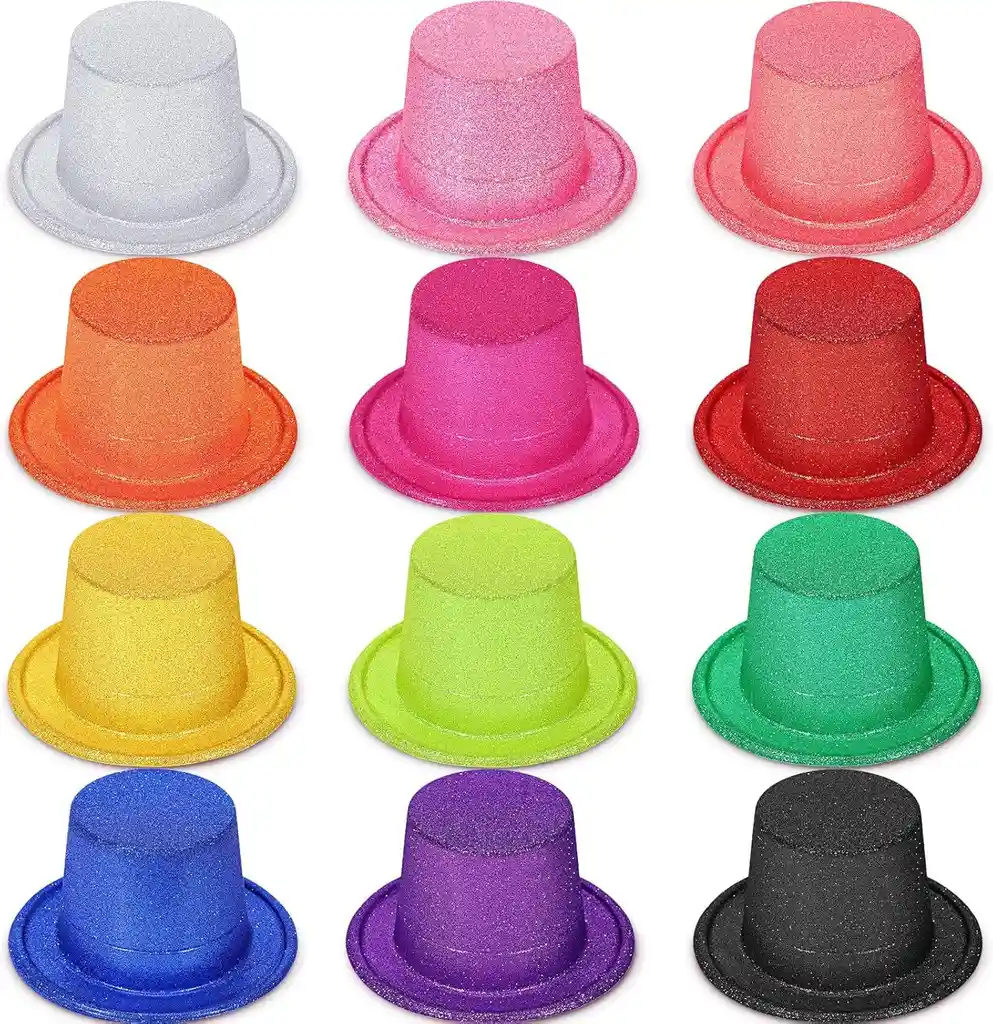 Sombreros plasticos brillantes x6 unidades talla Adultos Perfecto para tu fiestas, hora loca Hora loca, cumpleaños Bodas y celebraciones especiales largo total de 28cm largo donde va la cabeza de 20.5 cm ancho total 24.5 cm SE ENVIAN COLORES SURTIDOS ideal para cualquier celebracion si deseas algo adicional indicanos y con gusto te colaboramos