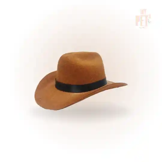 Sombrero vaquero talla S ideal para mascotas pequeñas. Hecho en fieltro liviano y cómodo, con cinta negra decorativa, perfecto para sesiones de fotos, fiestas temáticas o simplemente para lucir con estilo.
