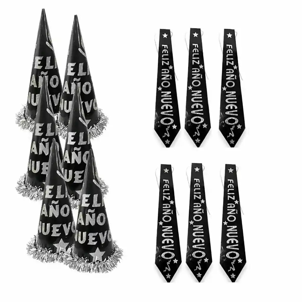 Celebra el Año Nuevo con estilo y diversión con nuestro sombrero de copa de la colección Año Nuevo Hora Loca. Este diseño festivo es perfecto para añadir un toque especial a tus celebraciones, convirtiendo cualquier reunión en una experiencia memorable. Fabricado en cartón, es ligero y cómodo, ideal para que todos los invitados lo lleven durante toda la noche. 6 gorros 6 corbatas .