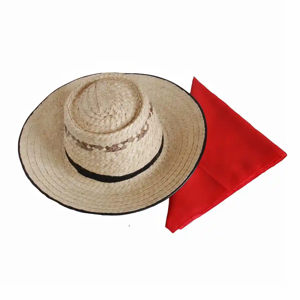 Combo por 2: Sombrero en paja andino y pañoleta roja. Ideal para complemento de bailes típicos colombianos, región andina para niños de 8 a 10 años