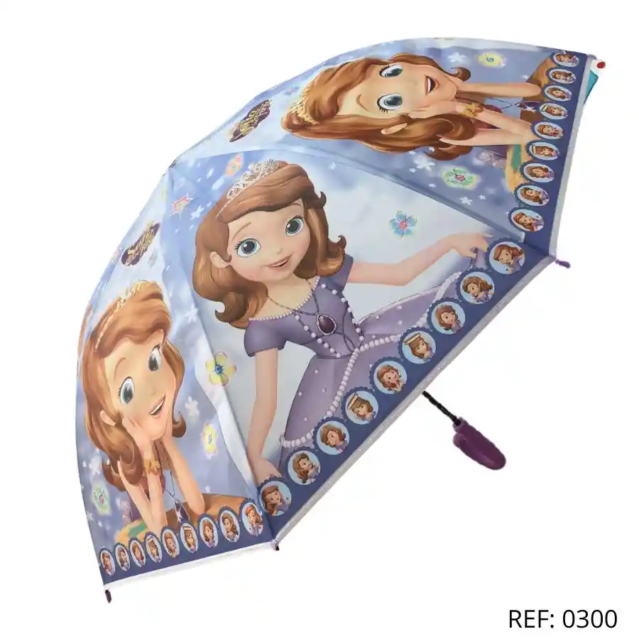 Sombrilla infantil con diseño de princesa Sofía. Colorida, resistente y perfecta para días lluviosos con estilo.