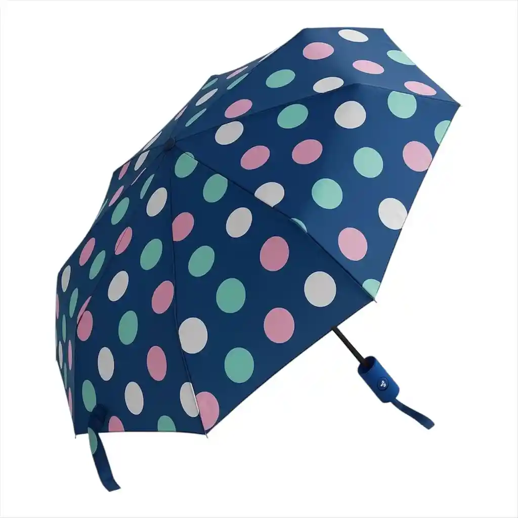 Sombrilla Paraguas Automatica Valentina Gold 8 Varillas Fondo Azul Puntos De Colores. Ideal para protegerte de la lluvia y el sol
