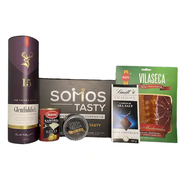 Esta Ancheta De Somos Tasty Incluye Los Siguientes Productos: Whisky Glenfiddich 15 A.?os 750Ml, Mix De Madurados 125G, Chocolate Lindt Excellence Sea Salt 100G, Aceitunas Serpis De Queso Manchego Y Torta Negra De La Tia Blanca 150G.