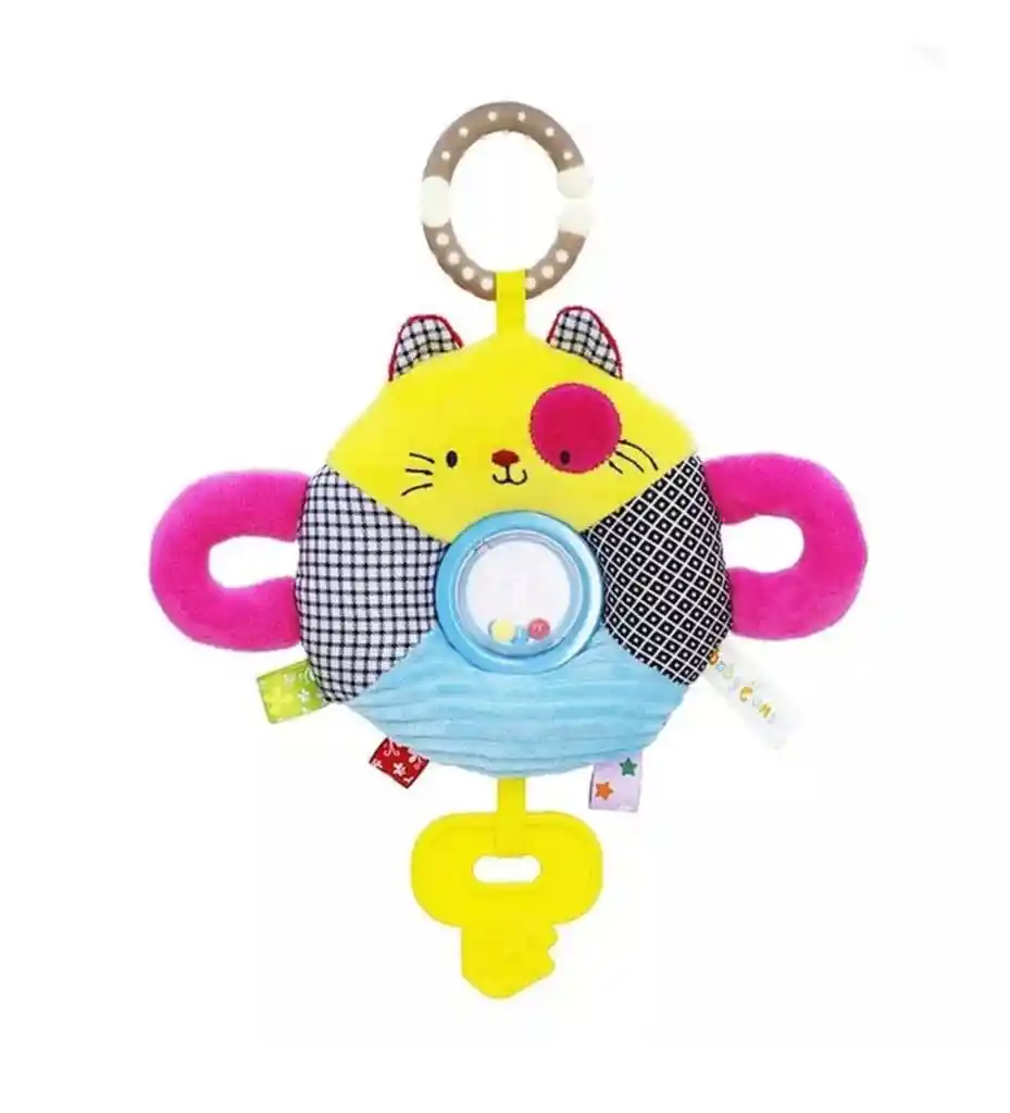 Sonajero Colgante de Estimulación Visual con Mordedor Juguete ideal para acompañar al bebé durante sus primeros meses, diseñado para estimular la vista, el oído y el tacto. Su estructura colgante permite colocarlo fácilmente en coches, cunas o sillas de paseo, ofreciendo diversión y aprendizaje en cualquier lugar. Características principales: Diseñado con colores contrastantes que favorecen la estimulación visual. Incluye mordedor suave y seguro, ideal para aliviar las encías. Contiene sonido de sonajero que atrae la atención del bebé. Elaborado con materiales libres de BPA y seguros para el uso infantil. Fácil de colgar y transportar. Beneficios: Promueve la coordinación ojo-mano. Estimula los sentidos y la curiosidad natural del bebé. Acompaña el desarrollo sensorial desde los primeros meses.