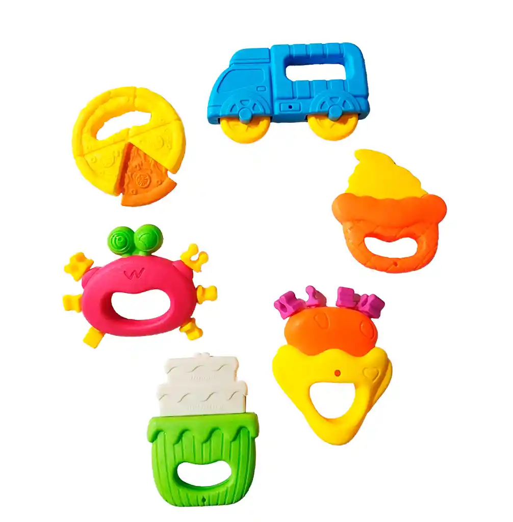 Este encantador set de sonajeros, diseñado con colores vivos y sonidos suaves, capta fácilmente la atención del bebé y estimula sus sentidos desde los primeros meses. Su tamaño y forma están pensados para que el bebé lo agarre con facilidad, favoreciendo el desarrollo de la motricidad fina. Al jugar con él, el bebé comenzará a coordinar sus movimientos en respuesta al sonido, fortaleciendo su audición, visión y sentido del tacto de manera natural y divertida. Ficha Técnica: Materiales : Plástico ABS Libre de BPA Cantidad de piezas: 6 Edad recomendada : 0 meses en adelante Material suave, cómodo, seguro, no tóxico Certificado de conformidad: E5-0359-2021 Referencia: C7014 ** _Para defectos de fábrica o retractos: \_Por favor revise el producto apenas lo reciba y antes de usarlo. No aplican ley de retracto o defectos de fábrica luego de usar el producto. Se manejan máximo 5 días para reportar defectos de fábrica (por ejemplo, producto funciona mal, piezas faltantes, rotas, etc). Para hacer efectiva la devolución el producto debe devolverse con el empaque original, el cual debe estar en buen estado, incluir todos los documentos y las partes completas y sin daños.