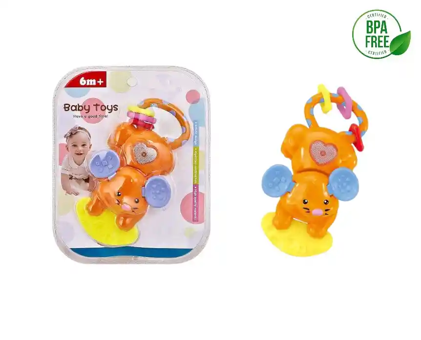 Sonajero musical con luces y mordedor – Ratón Naranja Este sonajero sensorial está pensado para acompañar a tu bebé mientras explora el mundo con curiosidad. Su diseño en forma de ratoncito naranja es llamativo, dulce y cómodo de sostener para manos pequeñas. Incluye un mordedor seguro y suave, perfecto para calmar las encías durante la etapa de dentición. Además, cuenta con luces y melodías integradas que capturan la atención del bebé y estimulan sus sentidos, favoreciendo el desarrollo cognitivo, auditivo y visual. Al agitarlo, produce un sonido suave que motiva al bebé a mover sus brazos y mejorar su motricidad fina. Es un juguete liviano, duradero y práctico para llevar en el coche, cuna o pañalera. Una opción completa que combina entretenimiento, alivio y aprendizaje temprano, ideal para bebés en sus primeras etapas de crecimiento. Perfecto como regalo o complemento en la rutina diaria del pequeño.