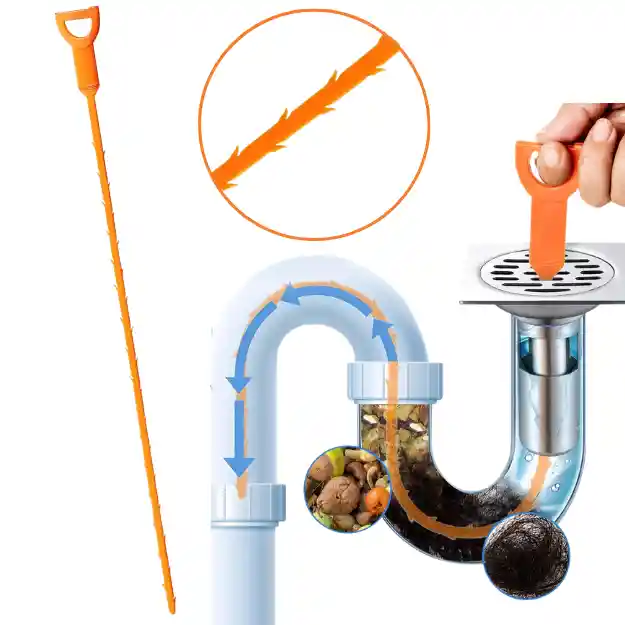 ¿Que es ? Es una herramienta de plomería doméstica, usualmente de plástico flexible o metal, diseñada con púas o ganchos pequeños para remover fácilmente pelos, residuos y obstrucciones en sifones, lavamanos y duchas. Es reutilizable, económica y permite destapar cañerías sin usar químicos ni desarmar tuberías. Características: 1. Diseño flexible que se adapta a curvas y tuberías 2. Ganchos especiales para atrapar pelos y suciedad 3. Reutilizable y fácil de limpiar 4. No requiere productos químicos 5. Material resistente y duradero Color: Naranja Tamaño: 51*5cm El paquete incluye: 1 x limpiador de drenaje para bañera de baño o cocina. Garantía de fábrica: 15 días