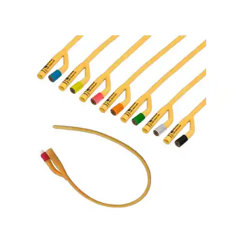 tubo flexible de látex que se introduce a través de la uretra hasta la vejiga para drenar orina cuando el paciente no puede hacerlo por sí mismo.