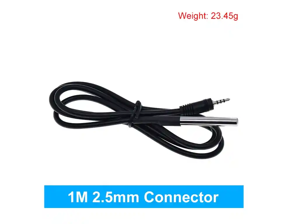 CONECTOR JACK 2.5mm Longitud del cable: 100cm Tamaño de la cubierta de acero inoxidable: 6 * 50 mm Rango de fuente de alimentación: 3.0V a 5.5V Rango de temperatura de funcionamiento: -55 ° C a + 125 ° C (-67 ° F a + 257 ° F) Rango de temperatura de almacenamiento: -55 ° C a + 125 ° C (-67 ° F a + 257 ° F) Precisión en el rango de -10 ° C a + 85 ° C: ± 0.5 ° C. Cables de salida: amarillo (VCC), rojo (DATA), negro (GND) impermeable Para cada cable, utilizamos líneas de estañado de 30 piezas, que es diferente de otros cables de sensores DS18B20, es suave y tiene una mejor capacidad de resistencia a la oxidación resistencia a la flexibilidad mejor conductividad térmica LA COMPRA INCLUYE: 1X SONDA TEMPERATURA DS18B20 1mt CONECTOR JACK 2.5mm