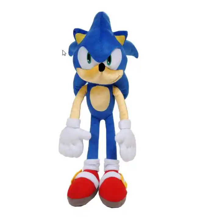 Este es uno de los peluches más icónicos y buscados de la línea de Sonic the Hedgehog. Con un tamaño de 18 pulgadas, se sitúa en la categoría de "Big Plush" o peluche grande, ideal tanto para abrazar como para decorar habitaciones temáticas de videojuegos. Representa la versión moderna de Sonic con sus extremidades largas y ojos verdes. ### Características del Diseño Fiel al Personaje: Presenta todos los detalles clásicos: sus púas azules características, las orejas puntiagudas con interior amarillo y su sonrisa lateral de confianza. Materiales de Alta Calidad: Está fabricado con telas de felpa suave (soft plush) de alta densidad, lo que lo hace muy agradable al tacto. Detalles Bordados: Los ojos verdes y la boca están bordados con precisión para evitar piezas pequeñas que se desprendan, aumentando su durabilidad y seguridad. Accesorios Clásicos: Incluye sus icónicos guantes blancos y sus famosas zapatillas rojas con la hebilla dorada lateral.