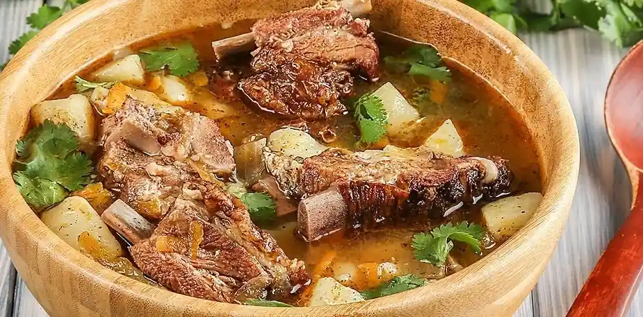 SOPA DE COSTILLA. CONTIENE DOS PRESAS DE COSTILLA, BASTIMENTO Y ARROZ.