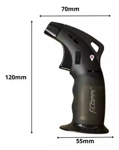 Soplete flameador de gas butano. Se puede usar para gratinar en repostería, flambear alimentos a la hora de cocinar, desinfección, eliminar pintura, flexión de tubos de plástico, Descongelar los cristales del coche en invierno, encender la barbacoa, reparaciones térmicas en automóviles, pequeñas soldaduras... Emite una temperatura máxima de hasta 1300ºC. Recargable con gas butano Standard. Potencia de la llama regulable. Sistema de seguridad anti encendido. tamaño: 120 x 70mm