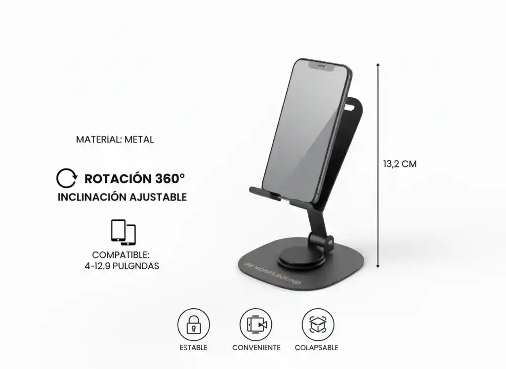 Holder Soporte Celular Tablet Escritorio Metálico Ajustable Giro 360° ¡Eleva tu comodidad y productividad al siguiente nivel! Imagina tu espacio de trabajo, estudio o entretenimiento perfectamente organizado. Con nuestro Holder Base de Escritorio en Metal, no solo adquieres un accesorio, sino una solución elegante y funcional que transforma tu forma de usar tus dispositivos. Este soporte de alta gama es más que un simple holder: es tu aliado ideal para el día a día. ¿Por qué este Holder de Metal es la elección perfecta? Comodidad Absoluta: Libera tus manos mientras ves tus películas y series favoritas, haces videollamadas o sigues una receta en la cocina. Su diseño ergonómico te permite ajustar el ángulo y la altura para una visualización perfecta, evitando dolores de cuello y espalda. Diseño que Impresiona: Fabricado en metal de alta calidad, su acabado elegante y minimalista le dará un toque de distinción a tu escritorio, oficina o mesa de noche. Es el accesorio que te da la comodidad que necesitas con el estatus que mereces. Versatilidad 360°: Su base giratoria te permite rotar tu dispositivo 360° sin esfuerzo. Pasa de un video vertical a uno horizontal en segundos, ideal para presentaciones, transmisiones en vivo o simplemente para compartir la pantalla con alguien a tu lado. Portabilidad para tu Vida: ¿Trabajo en casa, en la universidad o en la oficina? Gracias a su diseño compacto y plegable, puedes guardarlo fácilmente en un bolso. Es perfecto para el teletrabajo, las clases virtuales y para mantener tu celular siempre a la vista. Carga y Utiliza sin Límites: Su diseño inteligente te permite conectar el cargador sin problemas, para que nunca te quedes sin batería en tus momentos más importantes. Ficha Técnica: Nombre del Producto: Holder Soporte Celular Tablet Escritorio Metálico Ajustable. Material: Metal de alta calidad. Compatibilidad: Celulares y Tablets (iOS y Android). Funcionalidades: Rotación de 360° en la base. Inclinación y altura ajustable. Diseño plegable y portátil. Medidas del Producto: Alto: 13.2 cm Ancho: 8.7 cm Medidas de la Caja: 9 cm x 10 cm x 3.2 cm ¡No esperes más para darle a tus dispositivos la base de calidad que se merecen!
