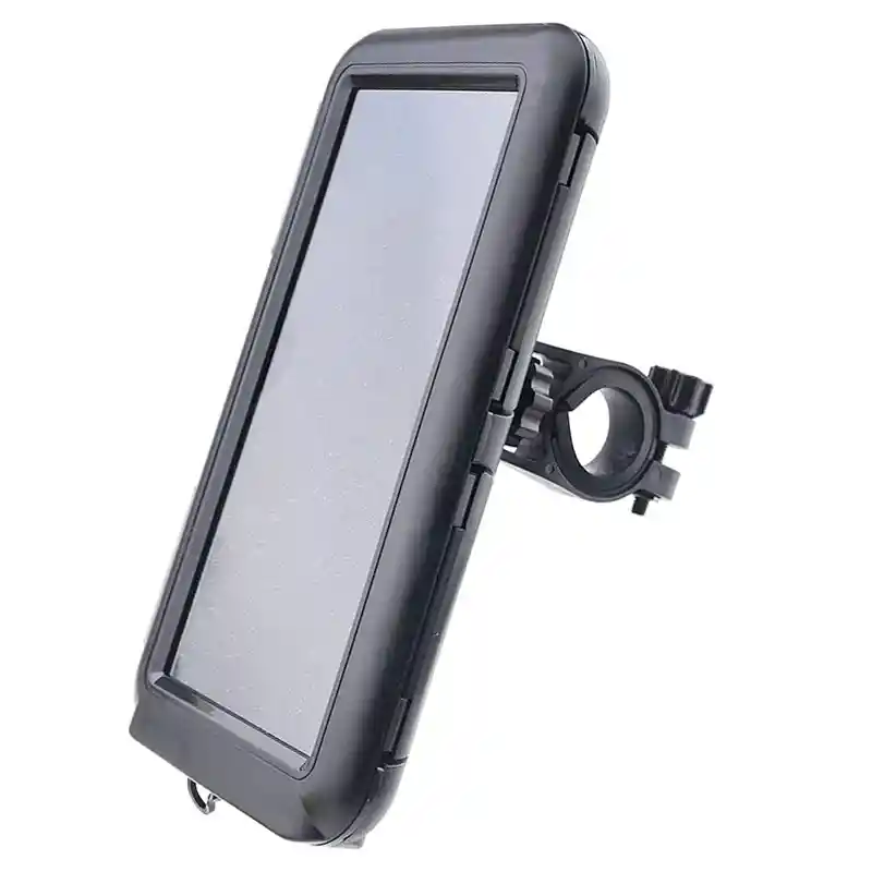Función del producto: impermeable (no bajo el agua), rotación, soporte plegable, simple y práctico Características: 1. Diseño de gran tamaño, adecuado para la mayoría de los modelos dentro de 6,5 pulgadas en el mercado 2. Anillo de sellado integrado, hace frente eficazmente a la mayoría de las condiciones de lluvia. 3. Acceso a conector para carga en la parte inferior