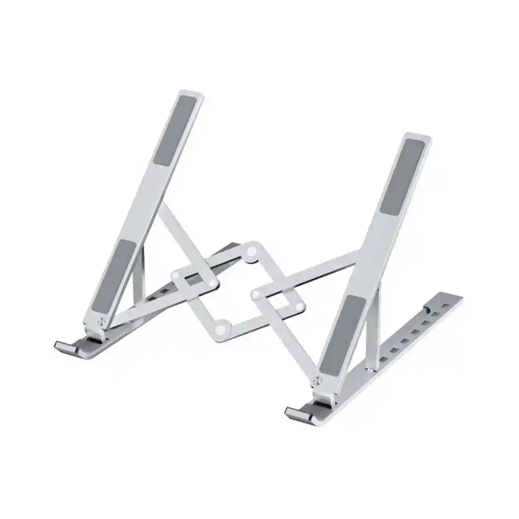 FICHA TÉCNICA - Material: Aluminio y goma de silicona - Ángulo ajustable: Rotación 180° - Altura máxima: 17,5 cm - Altura mínima: 5 cm - Apertura máxima: 23,5 cm - Apertura mínima: 4,3 cm - Medidas plegado: 23,5 x 25,3 x 5 cm - Peso: 250 gr MODO DE USO 1.- Ajusta el ancho y ángulo que desees 2.- Apoya tu dispositivo de forma horizontal o vertical ¡y listo!