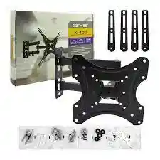Excelente soporte de pared, perfecto para el montaje en pared de televisores LCD y de plasma con un tamaño entre 32 "y 55". Extremadamente seguro, práctico y versátil, diseñado con tres articulaciones que garantizan la función de rotación horizontal de un ángulo máximo de 180 ° y la función de inclinación de la placa de enganche de TV igual a -15 / + 15 °. *ESPECIFICACIONES TÉCNICAS: -Tamaño del televisor: 32 '' - 55 '' -Distancia máxima a la pared: 460 mm (aprox.) -Distancia mínima a la pared con soporte cerrado: 80 mm (aproximadamente) -Rotación / Orientación: 180 ° -Conexión VESA 200-200 mm *INCLUYE: -1 soporte para TV -Tornillos para montaje -1 caja de empaque