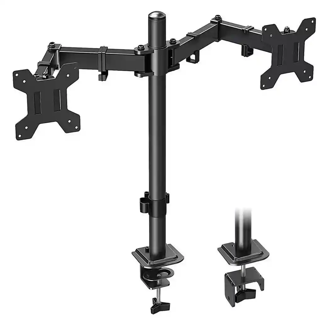 Nuevo, máxima calidad, VESA para Tv, PC Monitor Ultrawide de 13 a 33 Pulgadas. Distancia entre orificios Norma VESA 7.5X7.5 / 10X10 cm. Se puede Instalar en escritorios de 1 cm hasta 10 cm de grosor. Instalación mediante sistema de prensa en escritorios de hasta 5 cm de grosor (no requiere perforar la superficie y se debe ubicar al borde del escritorio). Soporta un peso de 8 kg (17.6 lbs). Giro lateral 90º y rotación de 180° Inclina -90/+90° Distancia del Monitor a la barra (Extensión completa del brazo) es de 40 cm. Altura ajustable. Altura de la base al centro de la pantalla de 40 cms. (Altura del poste) Orientación de la visualización: vertical u horizontal.
