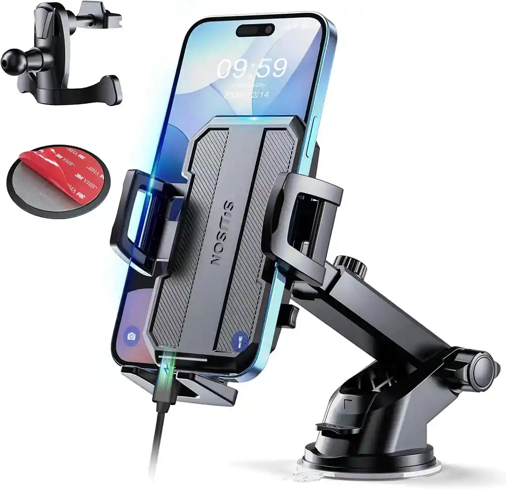 Nuestro soporte de teléfono para el soporte de automóvil se instala en el tablero, parabrisas o ventilación, elige el método de instalación que se adapte a tu modelo de automóvil de acuerdo a tus necesidades. Se adapta a la mayoría de automóviles, camiones, SUV, cabinas y cualquier otra superficie plana sin cuero, es adecuado para conductores de Uber y Lyft.
