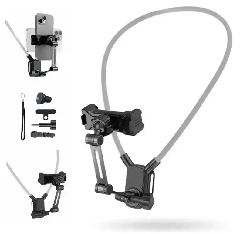 ¿Cansado de grabaciones inestables o de no tener suficientes manos? Lleva tus contenidos al siguiente nivel con el Soporte de Cuello Profesional con Brazo Extensible. Diseñado para creadores de contenido, deportistas y amantes de la practicidad que buscan capturar la vida exactamente como la ven: en primera persona (POV) y con total libertad de movimiento. ¿Por qué este es el soporte definitivo? Brazo Extensible Único (15 cm): A diferencia de los soportes fijos, este modelo te permite alejar o acercar el celular para encontrar el encuadre perfecto, evitando la fatiga visual y el dolor de cuello. Estabilidad Superior Antivibración: Su núcleo de acero inoxidable flexible absorbe los movimientos bruscos, garantizando vídeos fluidos incluso mientras caminas o corres. Rotación 360° Total: Cambia de modo vertical (TikTok/Reels) a horizontal (YouTube) en un segundo gracias a su cabezal rotativo de alta precisión. Confort de Grado Médico: Recubierto con una capa de silicona de alta calidad, suave al tacto y antideslizante, para que puedas usarlo durante horas sin irritaciones. Característica Detalle Materiales / Acero Inoxidable + Silicona de Alta Densidad Longitud del Cuello / 55 cm (ajustable a cualquier ángulo) Brazo Extensible / De 12 cm a 15 cm Compatibilidad / Universal (Smartphones de todos los tamaños) Ángulo de Ajuste / 360° Grados Tecnología / Diseño Ergonómico Antideslizante