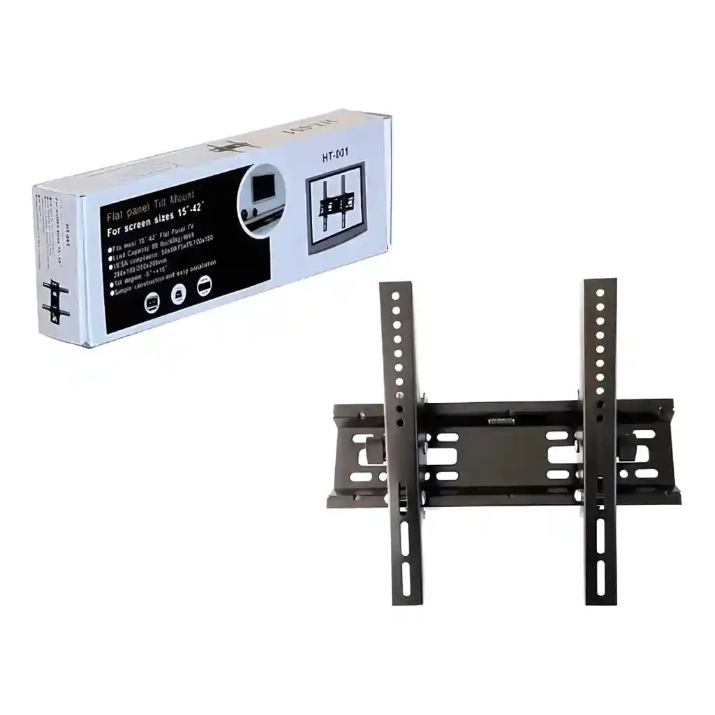 Es compatible con la mayoría de televisores LED y LCD de 15 a 42 pulgadas. Tiene una capacidad de carga máxima de 40 kg. Fabricado en hierro/acero de alta calidad, es resistente y duradero. Permite inclinar la pantalla hasta \(\pm 15^{\circ }\) para un ángulo de visión óptimo. Compatible con estándares VESA como 50x50, 75x75, 100x100, 200x100 y 200x200.