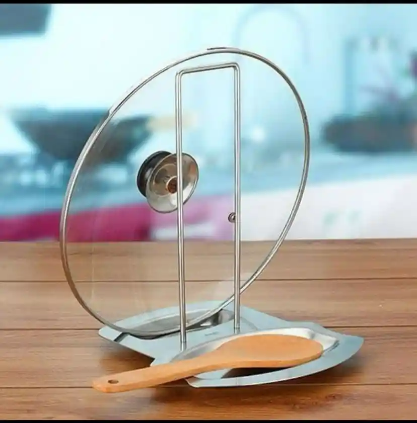 Material: acero inoxidable, Tamaño: aproximadamente 15,5*18 *20 cm, Peso: alrededor de 220 g, Práctico: puede ofrecer un nuevo lugar a la tapa de la sartén, las cucharas y los utensilios de cocina de todos los días.