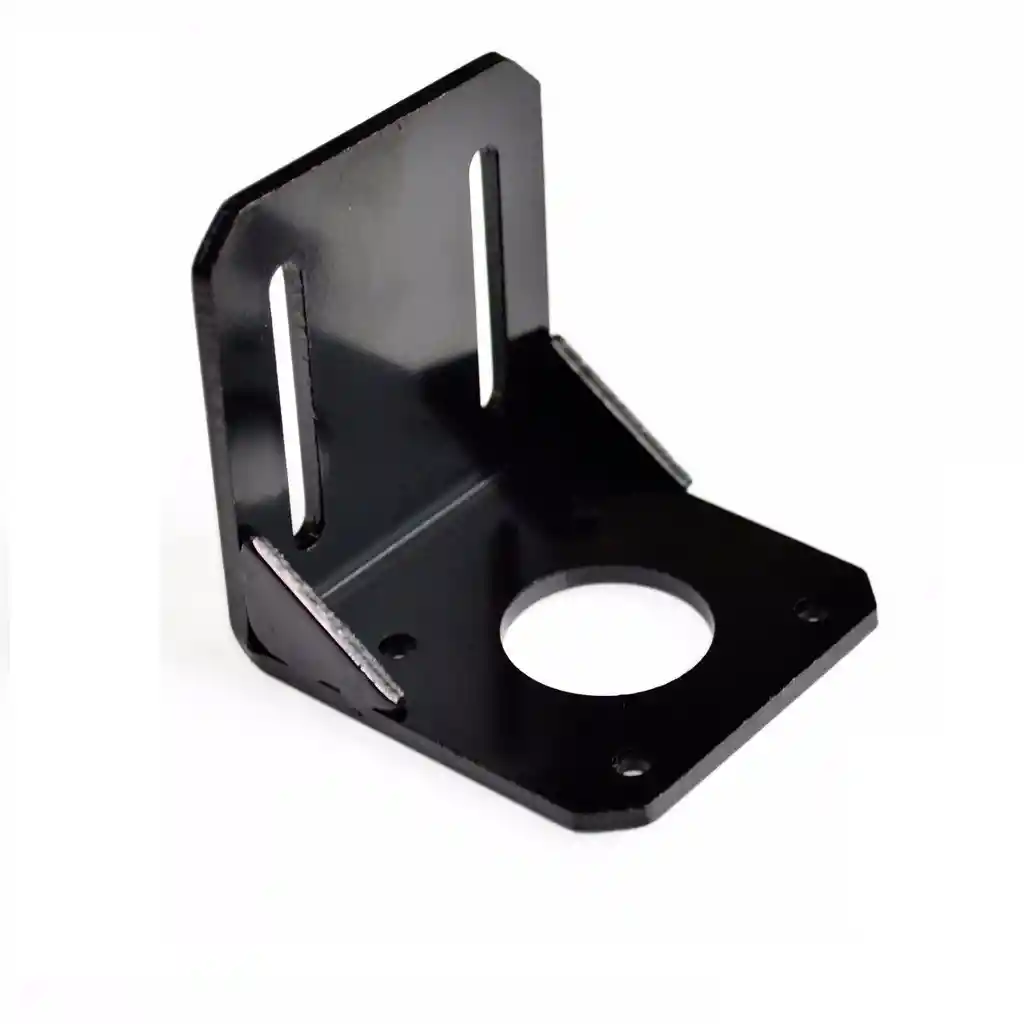 Soporte en forma de L para motor paso a paso Nema17. Ideal para CNC o Impresora 3D. Mejora la sujecion del motor a la maquina y evita desajustes por movimiento. Tamaño: 51*51*51mm Orificios de Sujecion Nema17: 31x31mm LA COMPRA INCLUYE: 1x SOPORTE L NEMA17