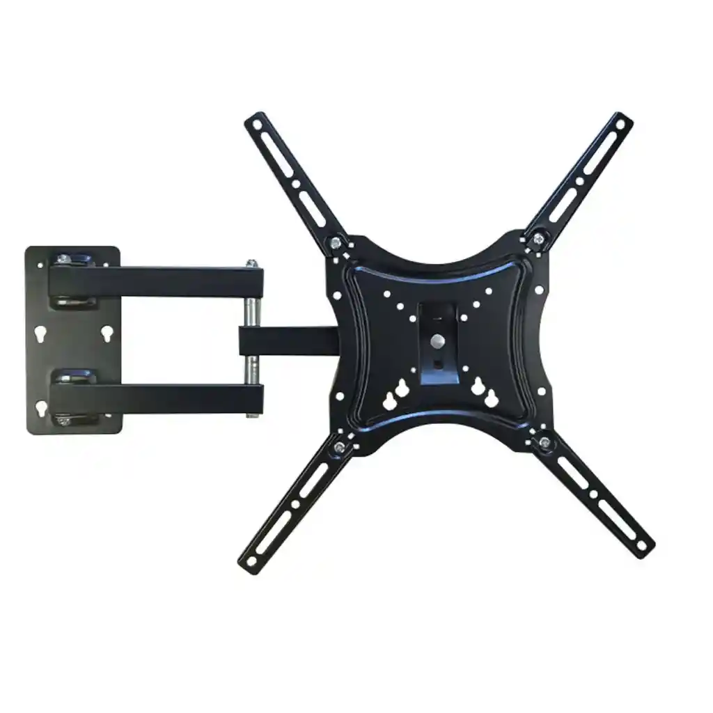 EJES EN PLASTICO Compatibilidad de Pantallas: Diseñado para televisores o monitores desde 14 hasta 55 pulgadas. Capacidad de Peso: Soporta un peso máximo de hasta 50 kg. Material: Construcción de acero en frío de grueso calibre con acabado de pintura en polvo duradera. Los ejes son de material plástico, como se indica en la imagen. Movilidad: Es inclinable, orientable y cuenta con un brazo móvil extensible que permite rotación y movimiento lateral para mayor flexibilidad. Instalación: Cuenta con un sistema VESA universal, adaptable a múltiples tamaños de TV (ej. 400x400, 100x100). Incluye la tornillería básica para su instalación.